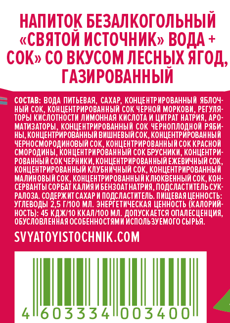 Вкусно и полезно? Так точно можно! Газированная питьевая вода Святой Источник Вода + сок - вода с ярким сочетанием любимых фруктов и комплексом витаминов в составе. Уникальный микс освежающих вкусов. Источник витаминов группы B. Поддержка иммунитета и нервной системы Святой Источник питьевая вода прямиком из артезианских скважин, обладающая чистым вкусом.