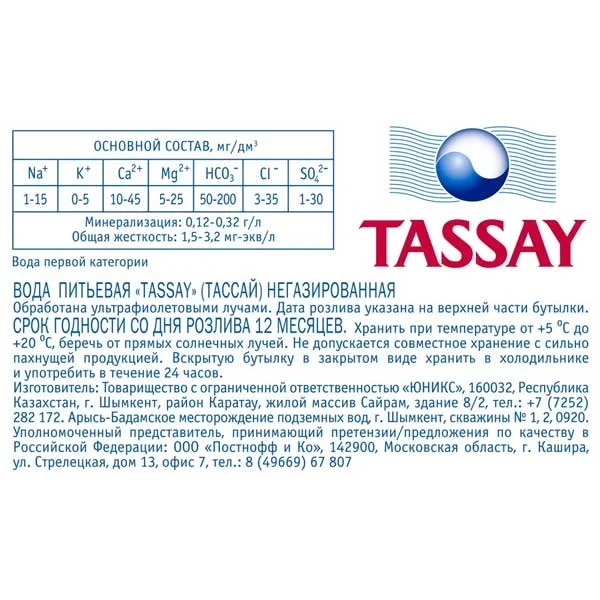 Вода Tassay питьевая негазированная, 1.5л