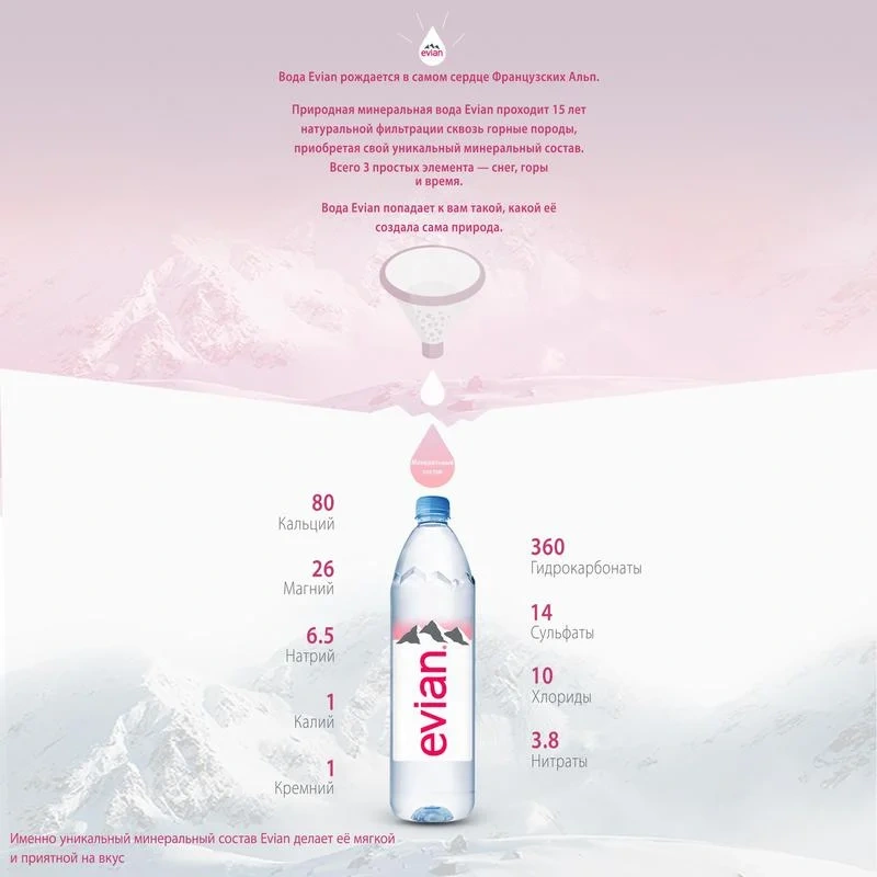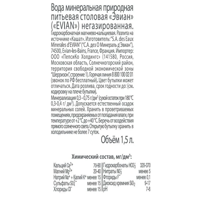 Evian вода 1.5 л, негазированная, ПЭТ