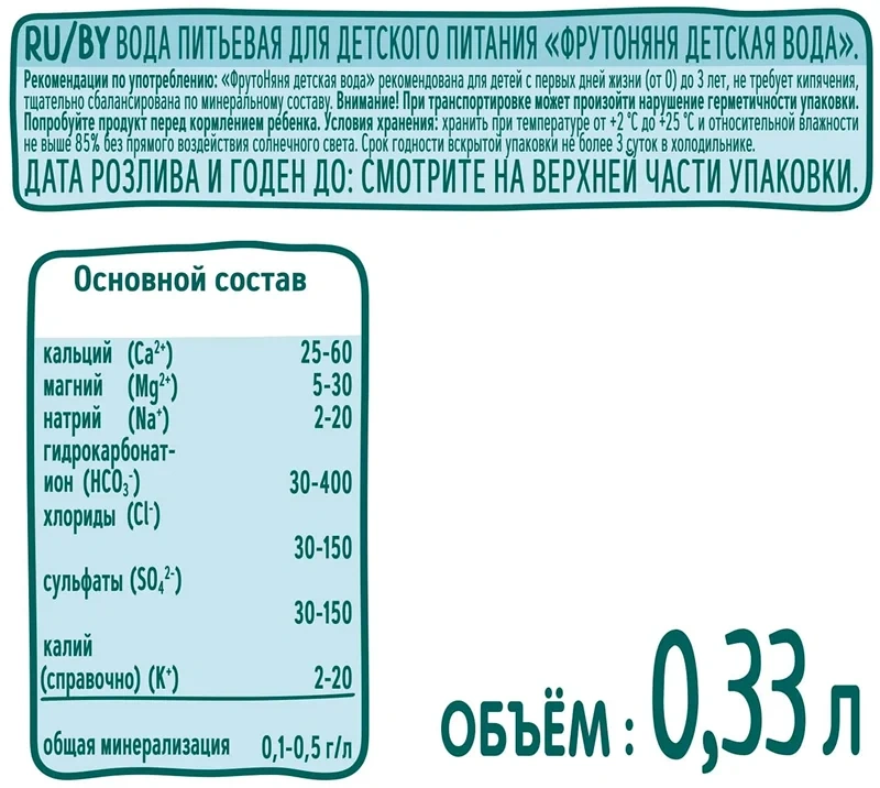 Фрутоняня вода 0,33 л негазированная, ПЭТ