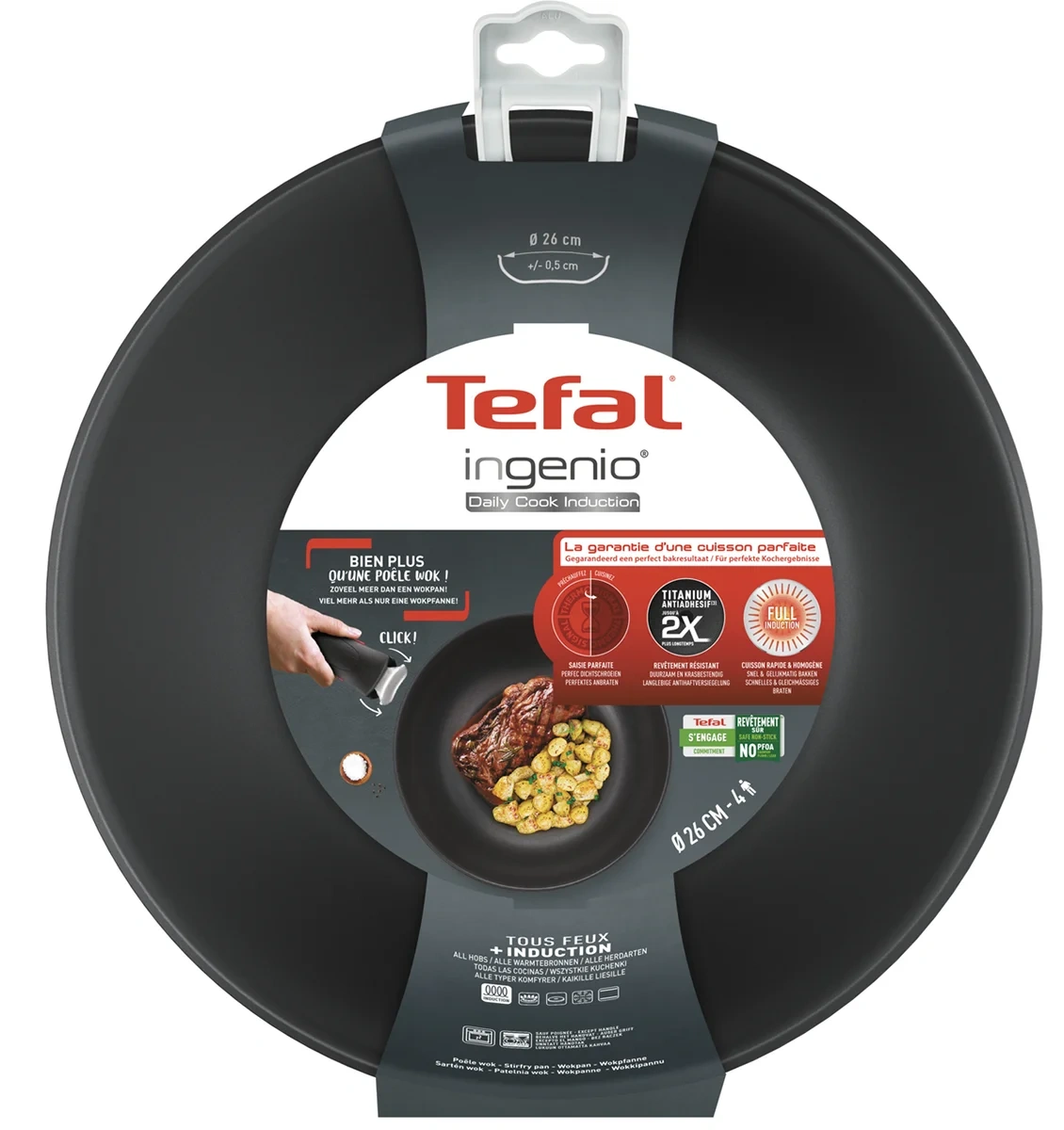 Ищете способ тратить меньше времени и сил на кухне? Серия Tefal Ingenio позаботилась о вас. Съемная ручка (продается отдельно) для легкого перемещения посуды с плиты прямо в духовку или холодильник? Есть! Компактный дизайн для экономии места в кухонных шкафчиках? Сделано! Ingenio: готовить проще! Tefal представляет Ingenio Daily Cook – посуду из высококачественной нержавеющей стали с безопасным антипригарным покрытием Titanium non-stick 2X. В этих исключительно прочных и долговечных сковородах, ковшах и сотейниках блюда получаются равномерно приготовленными и особенно вкусными и ароматными. Посуда Ingenio не подходит для хранения кислых продуктов.
