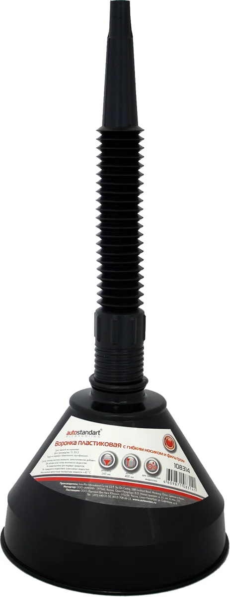 Воронка Autostandart, 16 х 40см — компактное и легкое приспособление, предназначенное для удобного перелива технических жидкостей и горюче-смазочных материалов из одной емкости в другую. Входит в набор необходимых авто-элементов для каждого водителя и станет незаменимым помощником в дороге. Изделие оснащено гибким носиком и фильтром-сеткой, который не влияет на пропускную способность, при этом задерживая грязь. Высокие борта предотвращают разбрызгивание жидкости.