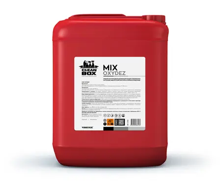 Жидкий концентрированный кислородный отбеливатель Mix Oxydez предназначен для профессиональной стирки и дезинфекции белого и цветного текстиля, устойчивого к кислородному отбеливанию.Преимущества:Оптимизированная формула средства обладает мощным отбеливающим действием при температуре 40°C и низких дозировках.Эффективного справляется с пятнами вина, соков, фруктов, чая, кофе, травы.Отбеливатель Mix Oxydez может использоваться как в комбинации с моющими средствами Mix, так и в качестве основного средства.В процессе использования разлагается на безопасные компоненты, поэтому не требует дополнительной нейтрализации.Средство обладает низкой вязкостью и применимо для любых стиральных машин и дозирующих систем.Проявляет высокую моющую способность в жесткой и мягкой воде.Инструкция по применению:Перед применением перемешатьДозировка средства:Основной цикл стирки: 2-6 мл /кг сухого бельяДля отбеливающей ванны: 3-8% от объема рабочего раствораТемпература:Основной цикл стирки: 40-80 °CДля отбеливающей ванны: от 40 °CКонцентрация средства и температурный режим подбираются индивидуально в зависимости от типа тканей, характера и сложности загрязнений, технологических параметров стирки.Совместимость с тканями: Mix Oxydez применим к белым и цветным тканям, для которых разрешено отбеливание кислородными отбеливателями. Не рекомендуется применять для стирки деликатных тканей - шерсть, шелк и т.д. Перед применением проверьте совместимость средства с изделием.Совместимость с другими средствами:Комбинируется со всеми базовыми средствами линейки Mix.Состав:Деионизированная вода (более 30%), перекись водорода (более 30%), кислота уксусная(более 5%, но менее 15%), функциональные добавки (менее 5%).Условия хранения:Хранить при температуре от +5°C до +25°C в оригинальной упаковке от производителя. Допускается заморозка во время транспортировки. В случае заморозки довести средство до комнатной температуры и тщательно перемешать. Срок годности - два года от даты изготовления, при условии соблюдения правил хранения.