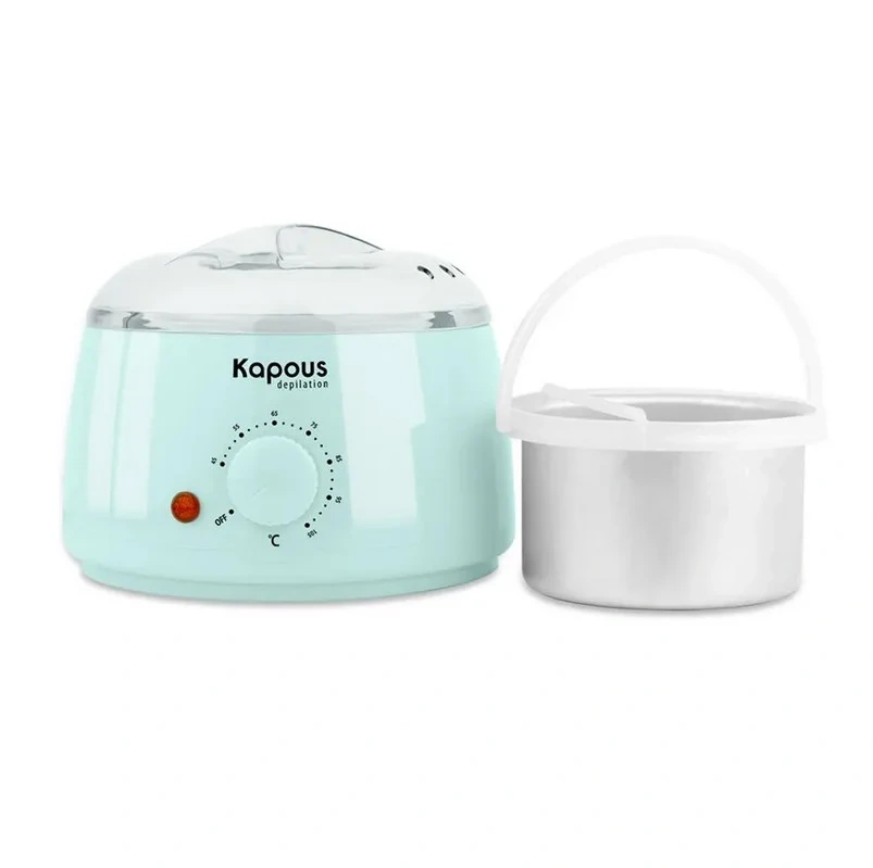 Электрический воскоплав для разогрева воска в банках и сахарной пасты,воска в гранулах или дисках Kapous Depilation. Работает от сети, имеет терморегулятор с максимальной температурой плавления 105 С. В комплект входит дополнительная ёмкость для разогрева воска в дисках или гранулах.