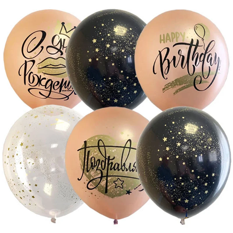 Воздушные шары, 25шт., М12/30см, ПатиБум 'С Днем Рождения. Rose Gold', металлик, перламутр, ассорти