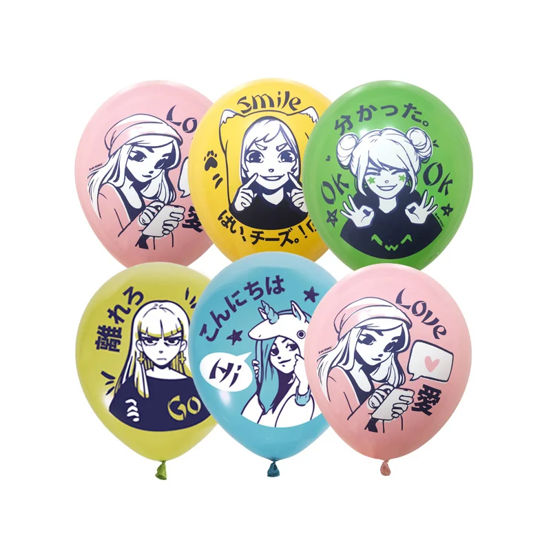 Яркое ассорти шаров с изображением девочек в стиле аниме. Их можно подарить на День Рождения или украсить вечеринку.