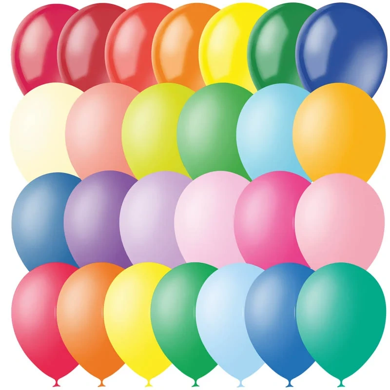 Набор цветных воздушных шариков для праздника. Яркие шарики диаметром до 30 см поднимут настроение и украсят любое событие. В наборе 100 шаров.