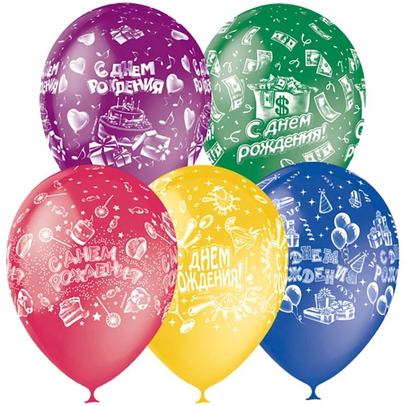 Воздушные шары Поиск С Днем Рождения 30см, 25шт, пастель+декор, растровый рисунок