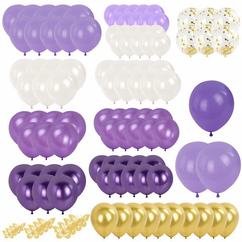 Шары воздушные НАБОР ДЛЯ ДЕКОРА 'Мечта', 100 шаров, сиреневый/белый/золото, BRAUBERG KIDS, 591897