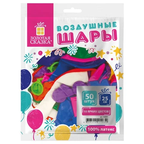Шары воздушные ЗОЛОТАЯ СКАЗКА, 10' (25 см), КОМПЛЕКТ 50 штук, ассорти 10 цветов, пакет, 105001