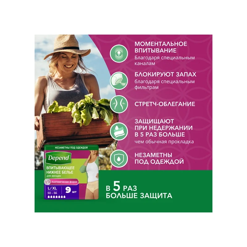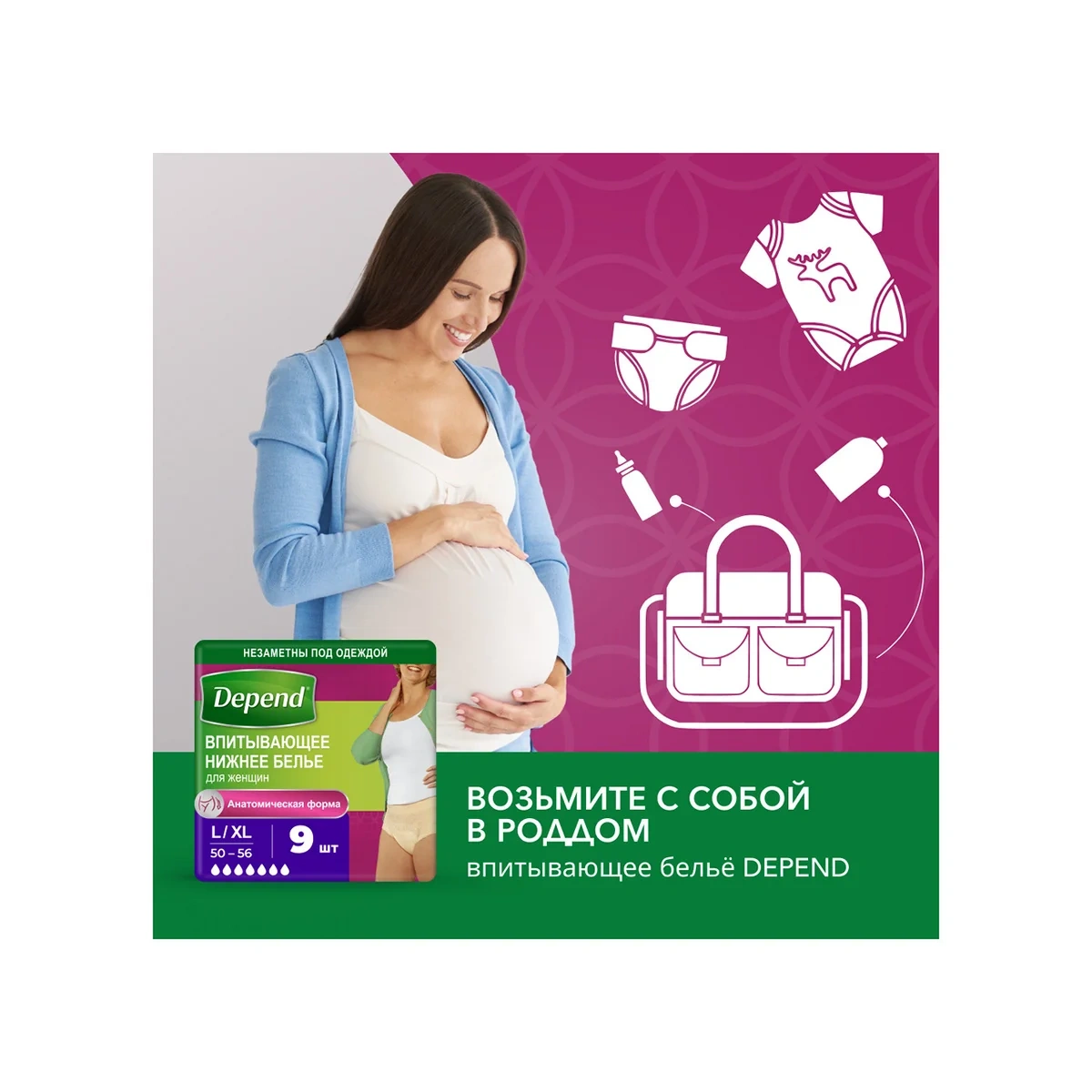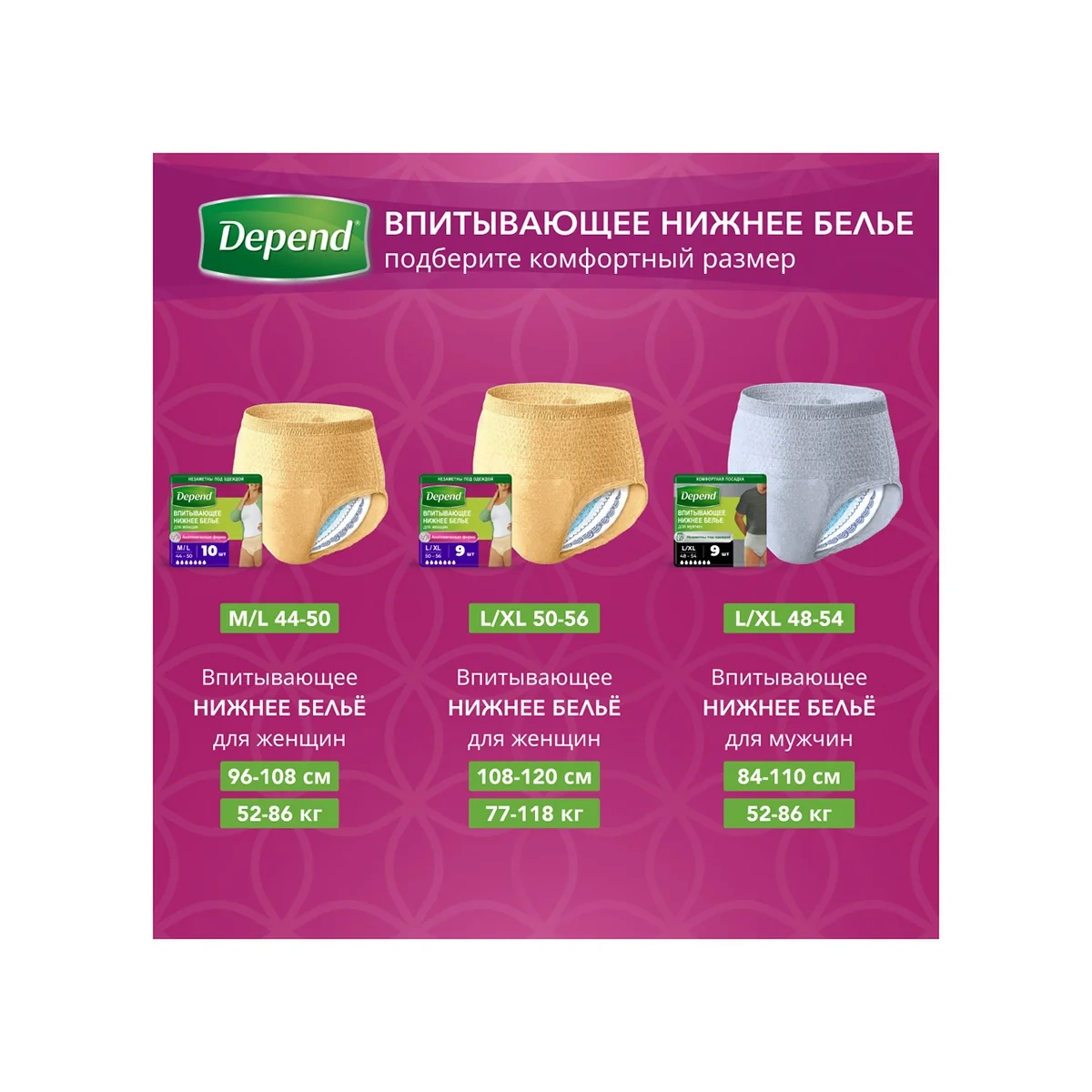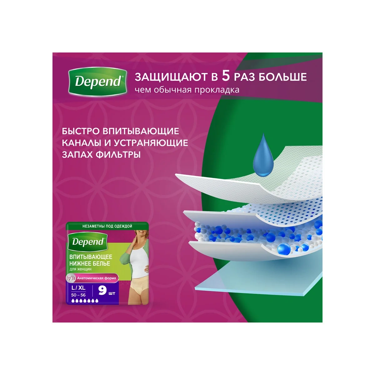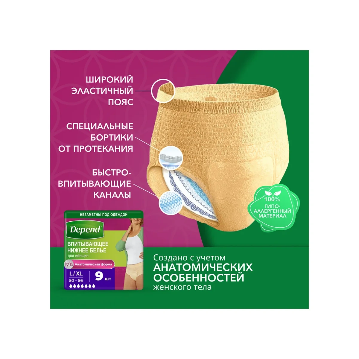 Впитывающее нижнее белье Depend для женщин L/XL, 9шт