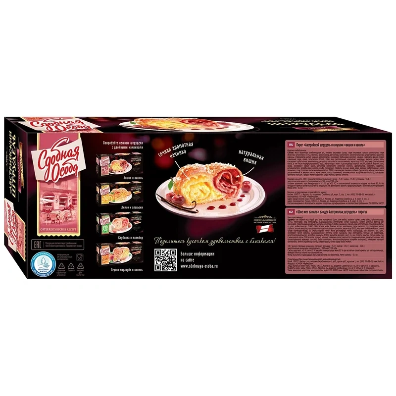 Пирог Сдобная Особа Черемушки Австрийский штрудель вкус вишня и ваниль, 400г