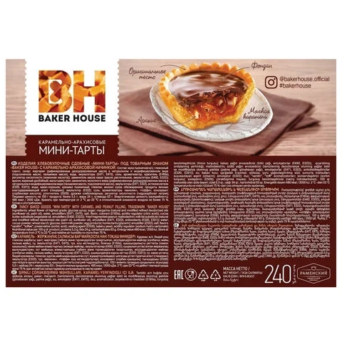 Мини-тарты Baker House карамельно-арахисовая начинка, 240г