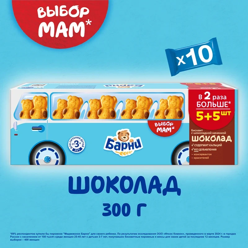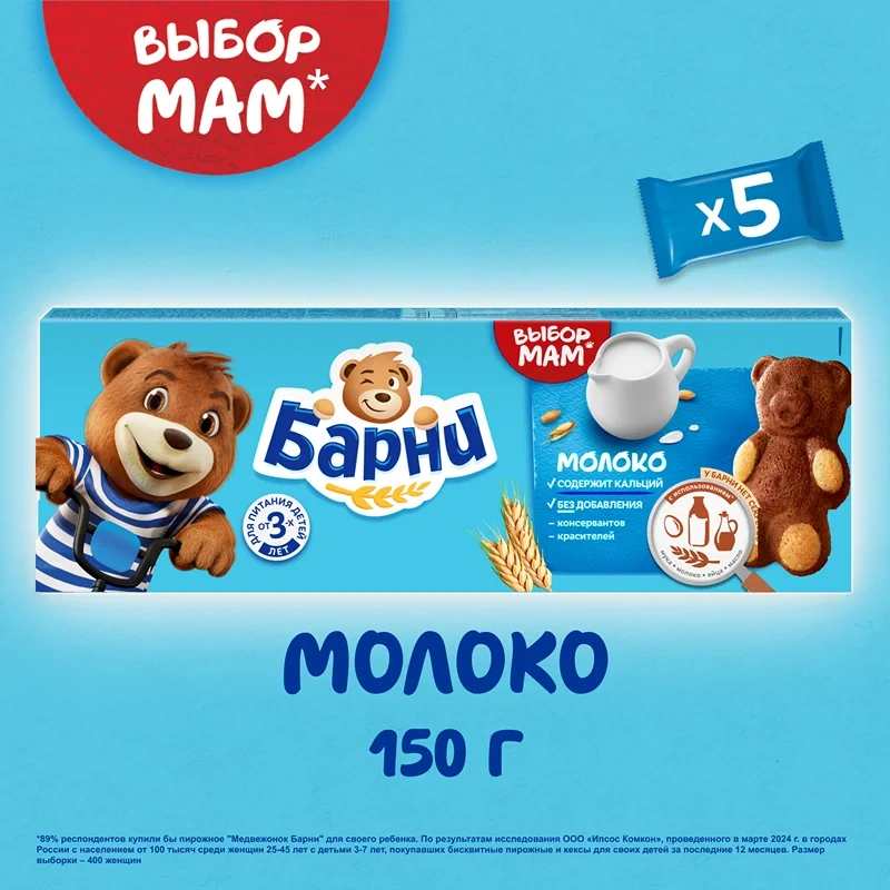 Бисквитное пирожное Барни с молочной начинкой - специально разработанное для детей кондитерское изде...