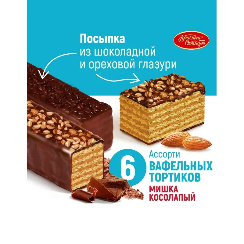 Торт Красный Октябрь вафельный мишка косолапый, 250г, ассорти