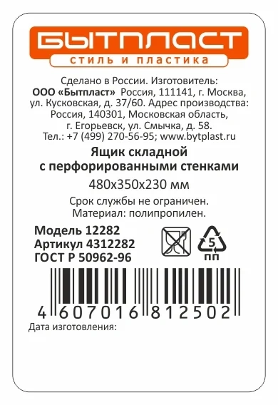 Ящик Бытпласт для продуктов складной 32л, 48 x 35 x 23см