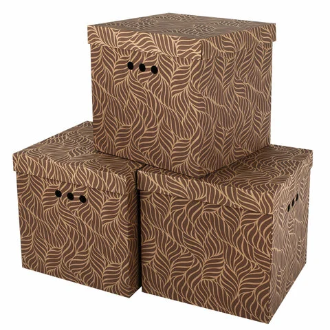Короб для хранения из плотного микрогофрокартона 315х315х315 мм, КОМПЛЕКТ 3 шт., BRAUBERG HOME 'Узор