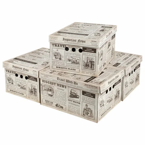 Короб для хранения из микрогофрокартона 380х280х315 мм, КОМПЛЕКТ 3 ШТ., BRAUBERG HOME 'Газета', 2718