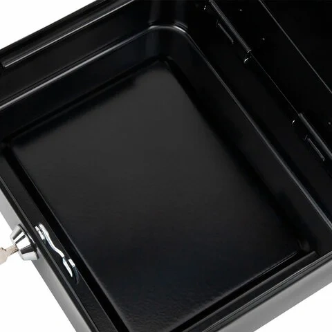 Съемный лоток из ударопрочного пластика с 5 отделениями предназначен для хранения денег, карточек, ключей и печатей. Под лотком предусмотрено пространство для документов и бумаг.