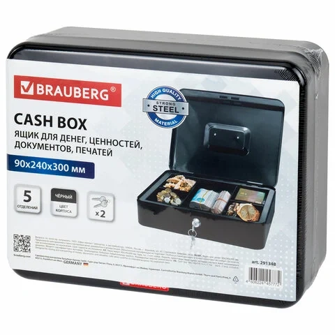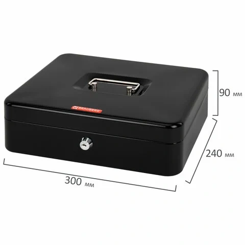 Ящик для денег, ценностей, документов, печатей, 90х240х300 мм, ключевой замок, черный, BRAUBERG, 291
