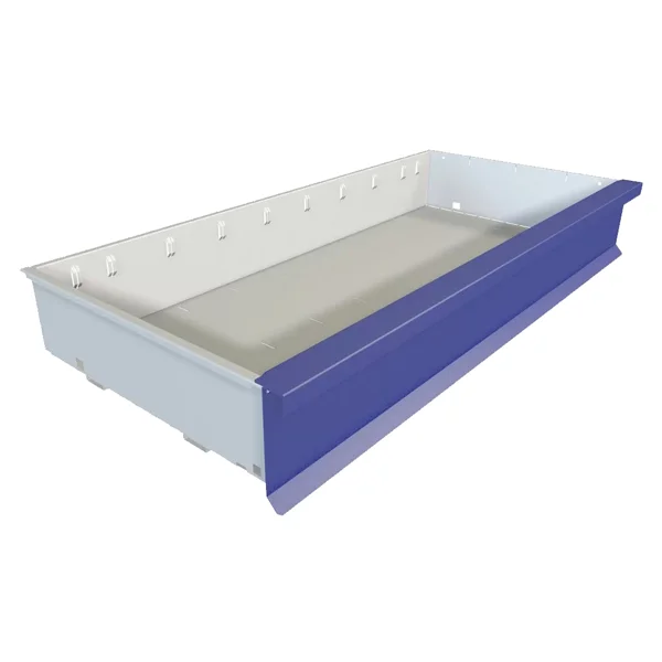 Выдвижной ящик высотой 125мм, полное выдвижение осуществляется с помощью телескапических направляющих. Нагрузка на ящик 30 кг