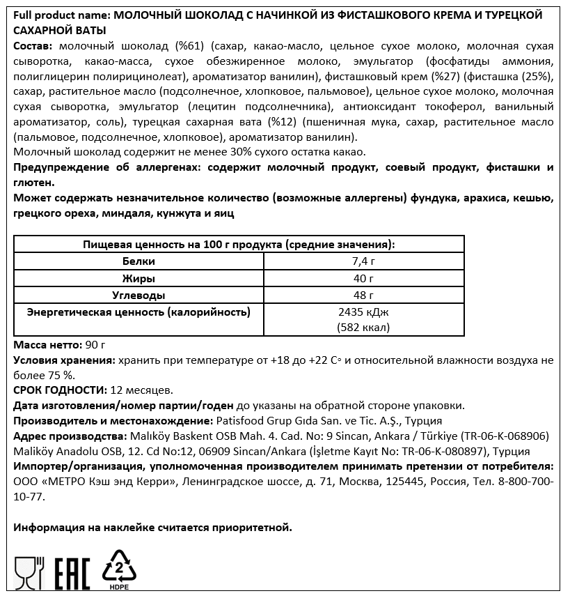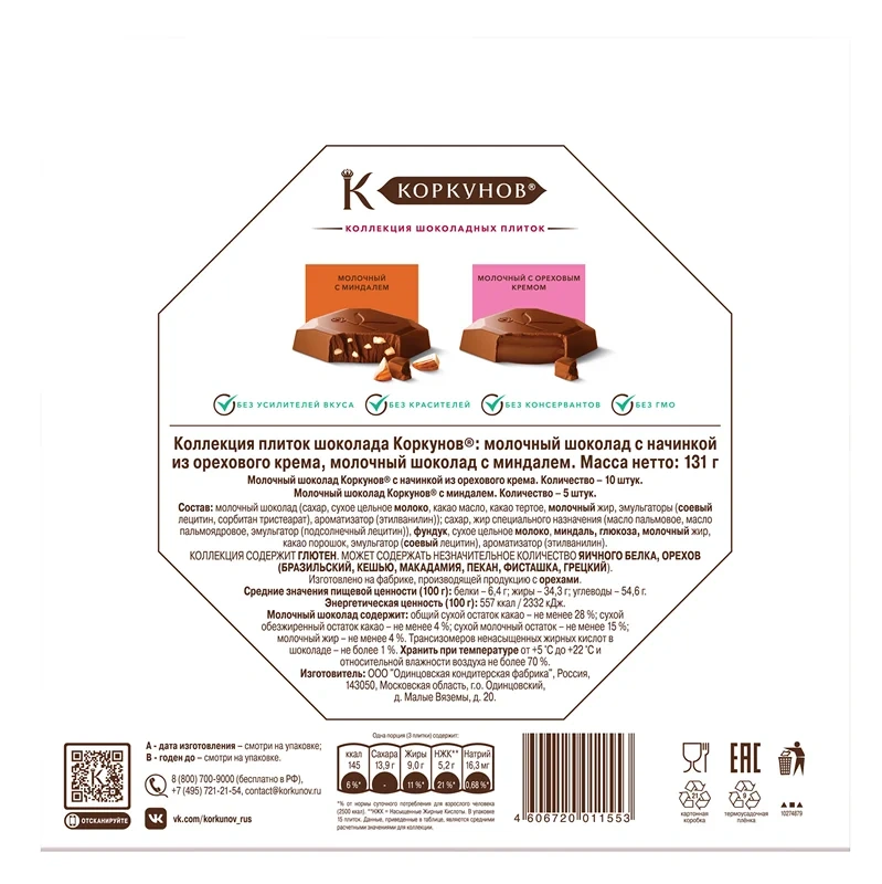 Сахар, масло какао, сухое цельное молоко, какао тертое, эмульгаторы: соевый лецитин, ароматизатор ванилин.