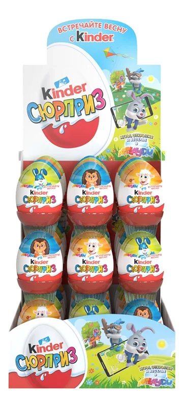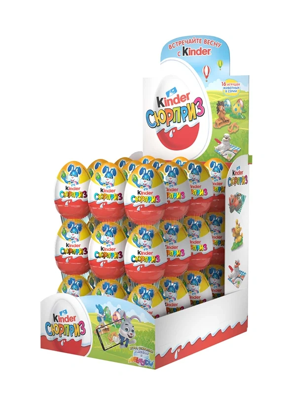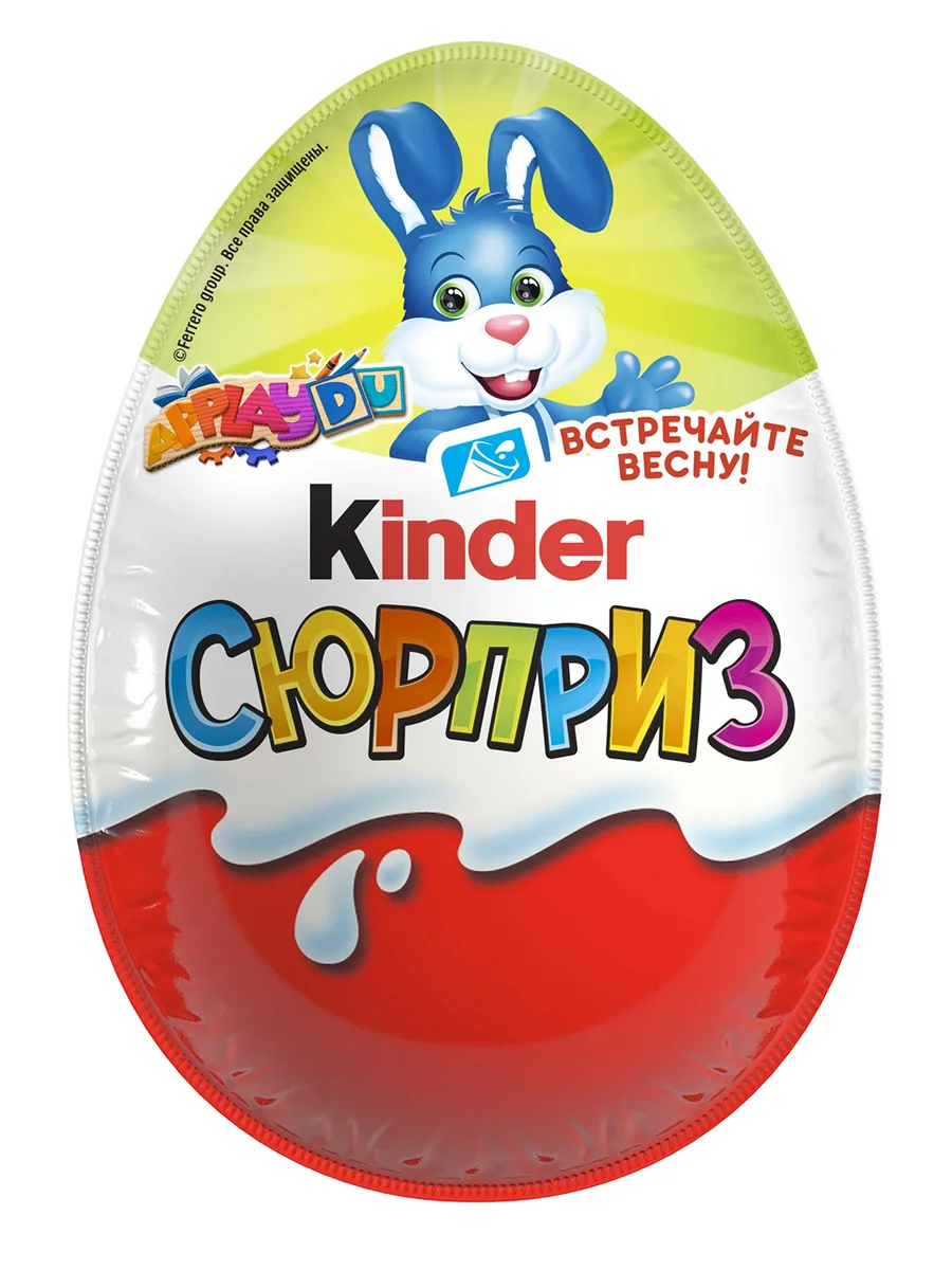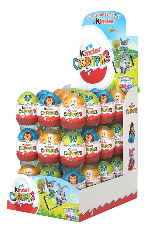 Kinder Surprise Яйцо шоколадное Весна 20 г – это вкусное лакомство, которое понравится детям всех возрастов. Взрослые также не останутся равнодушными. Десерт в форме куриного яйца состоит из двух видов шоколада – молочного (верхнее покрытие) и белого (внутреннее покрытие). Внутри него находится небольшая оригинальная фигурка. Такое лакомство может выступить в качестве самостоятельного перекуса, а также дополнить чай, сок и молоко. Продукт помещен в фольгированную бумагу, которая не только надежно защищает продукт от воздействия внешних факторов и помогает сохранить его органолептические свойства. На ней отображена вся необходимая потребителю информация о товаре. Ребенку не составит труда самостоятельно открыть угощение, поэтому он может взять его на прогулку или учебу.
