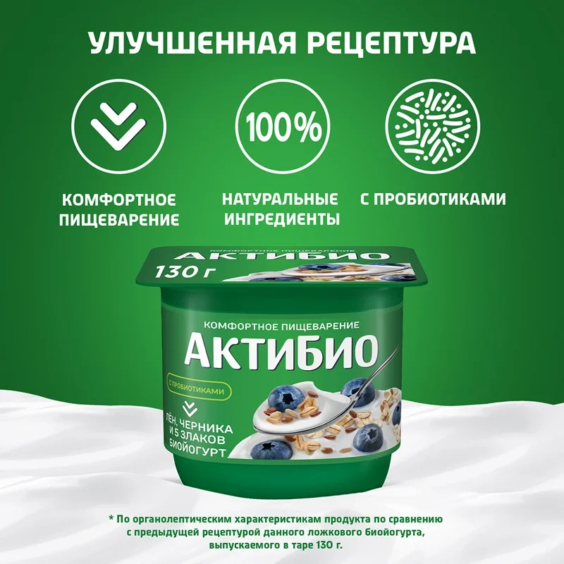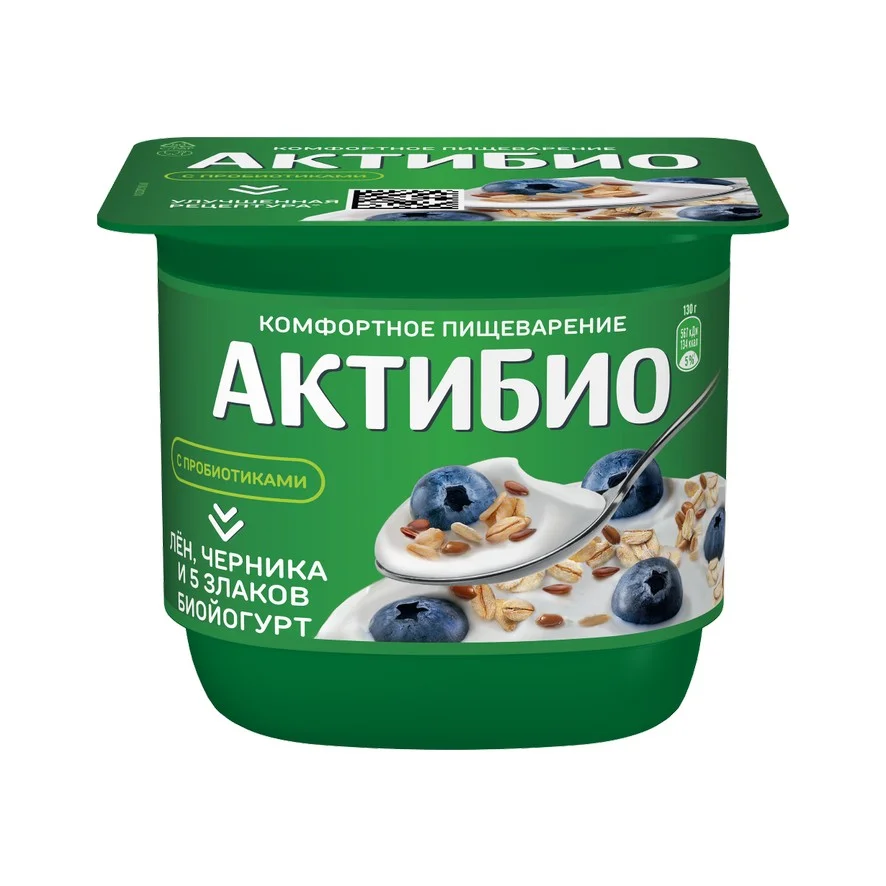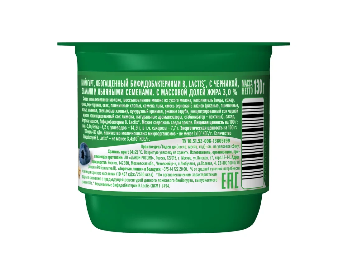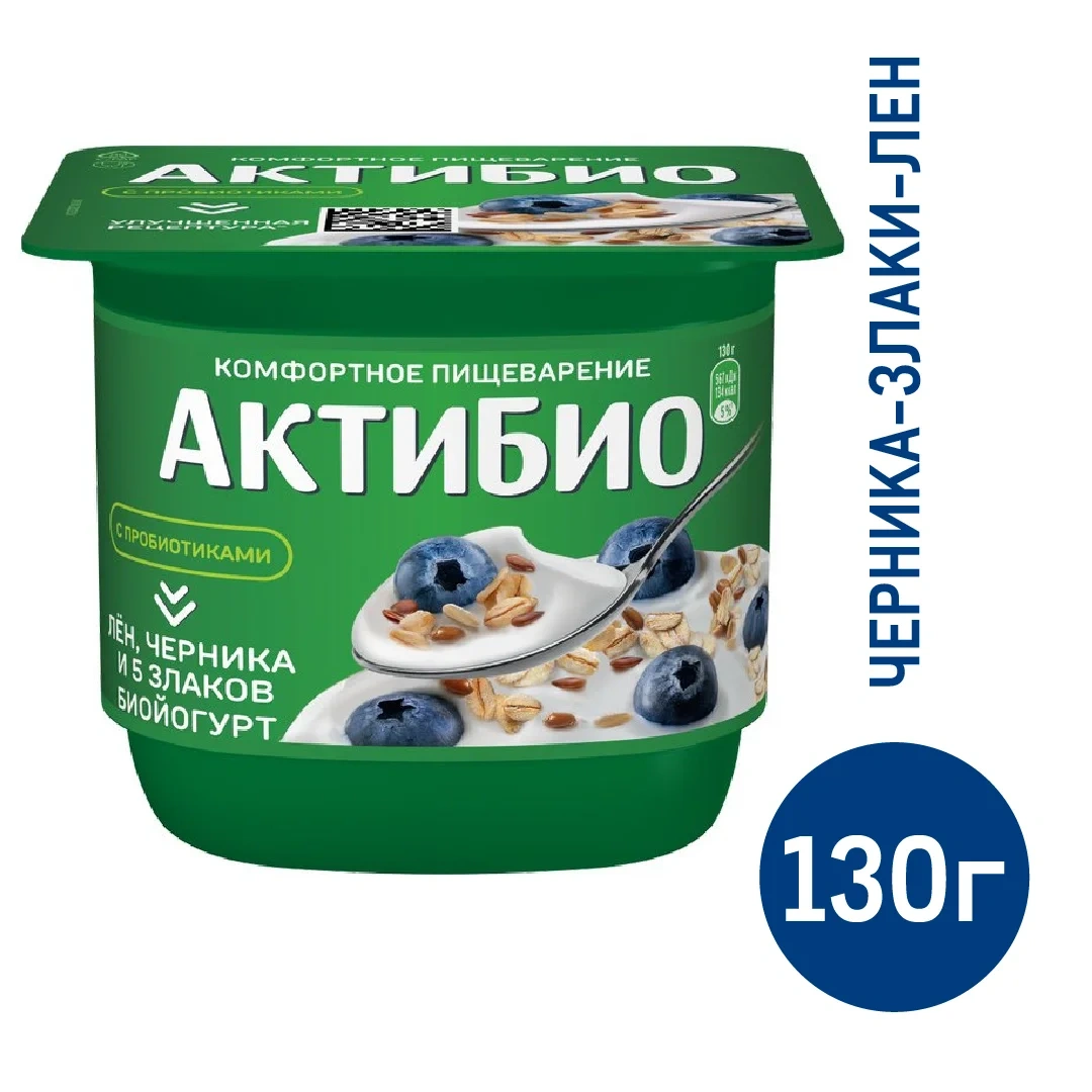 Йогурт Актибио Черника-злаки, 3%, 130г