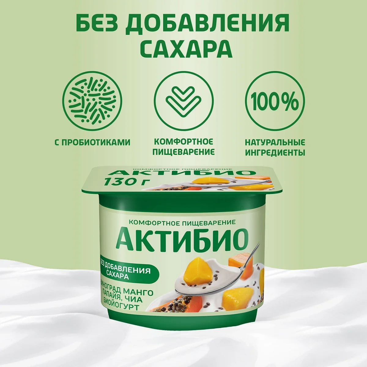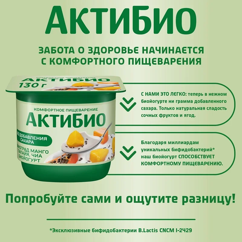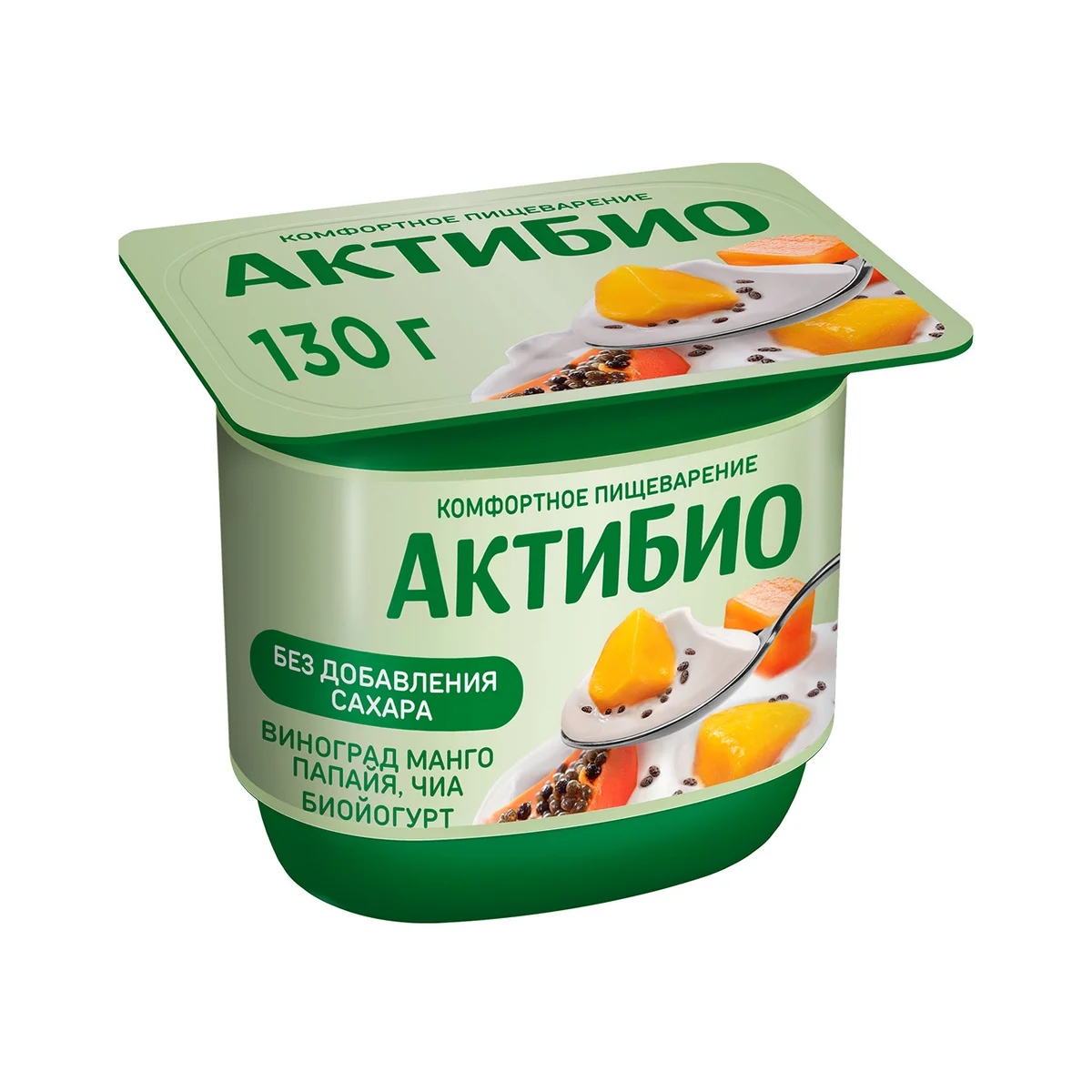 Йогурт Актибио виноград-манго-папайя-семена чиа 2.9%, 130г