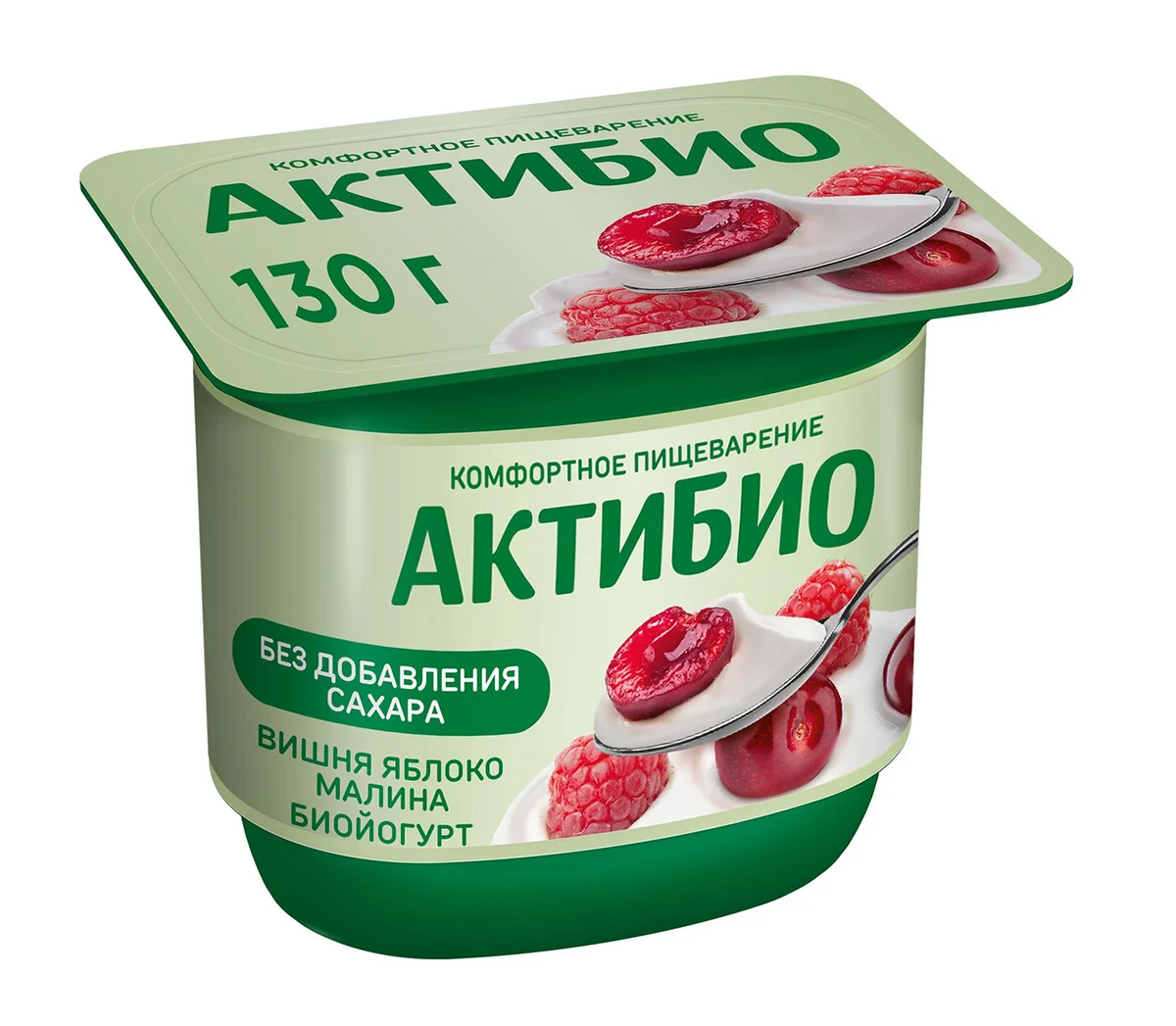Йогурт Актибио вишня-яблоко-малина 2.9%, 130г