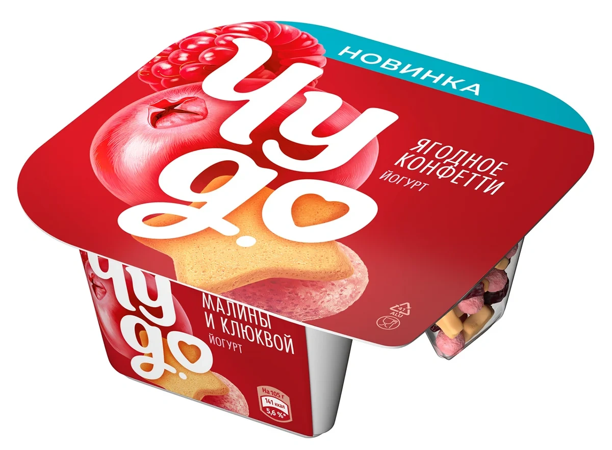 Йогурт Чудо Ягодное конфетти - десерт с нежной сливочной текстурой, со сливочно-ванильным печеньем, клюквой и злаковыми шариками со вкусом малины. Йогурт нежный идеально дополняет хрустящая текстура ягодных шариков и печенья в форме звездочек; насыпки находятся в отдельной секции от йогурта - вы можете смешать десерт на ваш вкус! Кисломолочный продукт из натурального молока подходит для перекуса в течение дня. Обновленное Чудо прямо в сердечко!