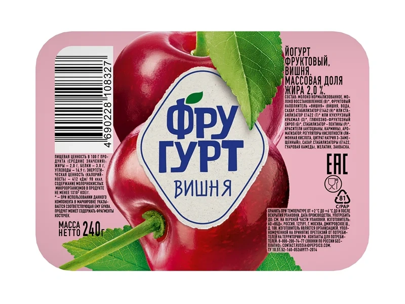 Йогурт Фругурт фруктовый вишня 2%, 240г