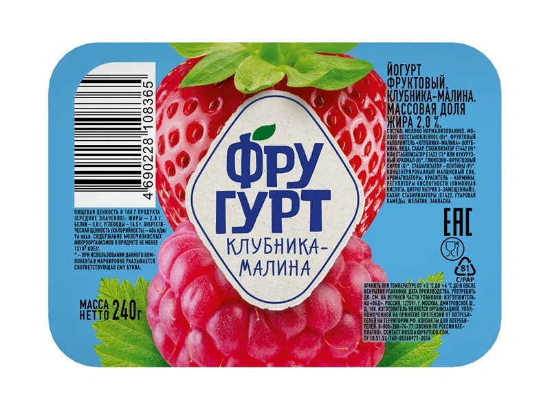 Йогурт Фругурт клубника-малина фруктовый 2%, 240г