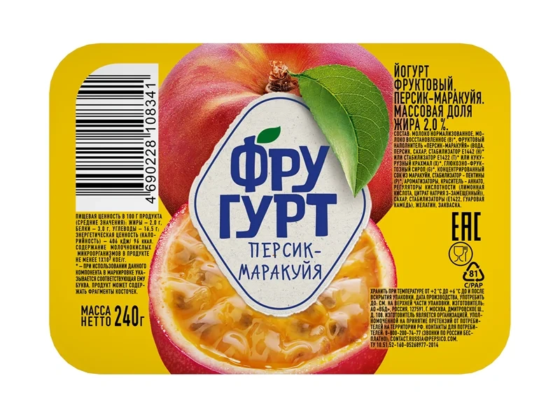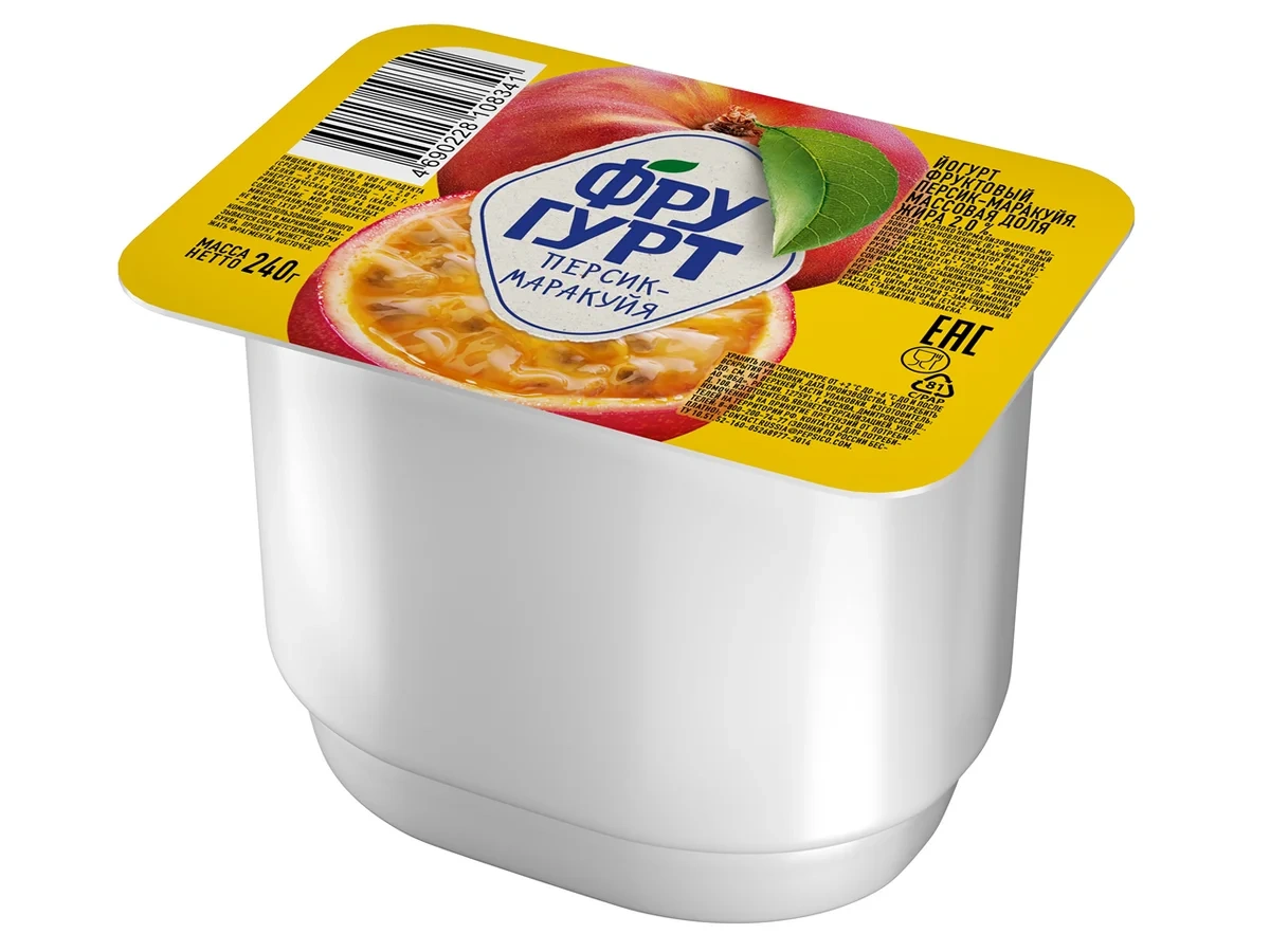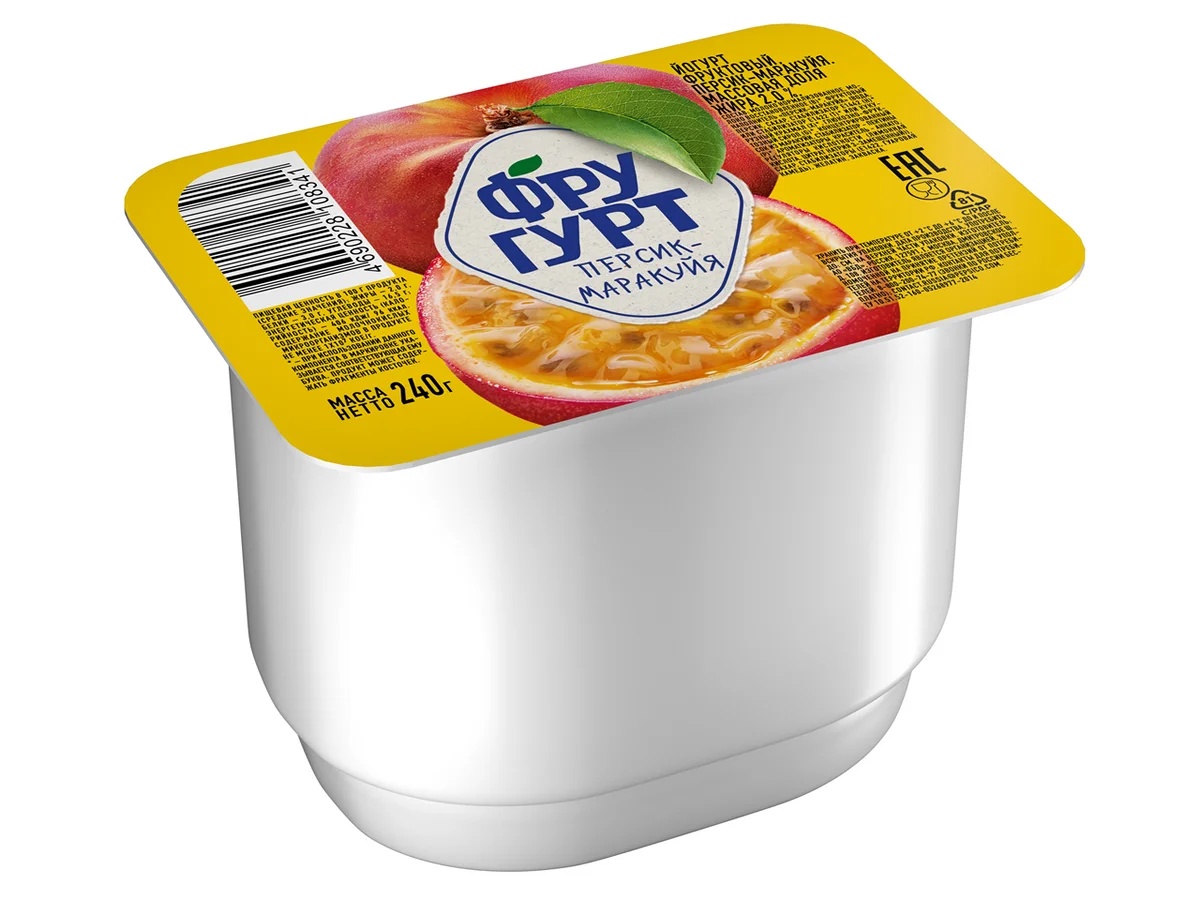 Йогурт Фругурт персик-маракуйя фруктовый 2%, 240г