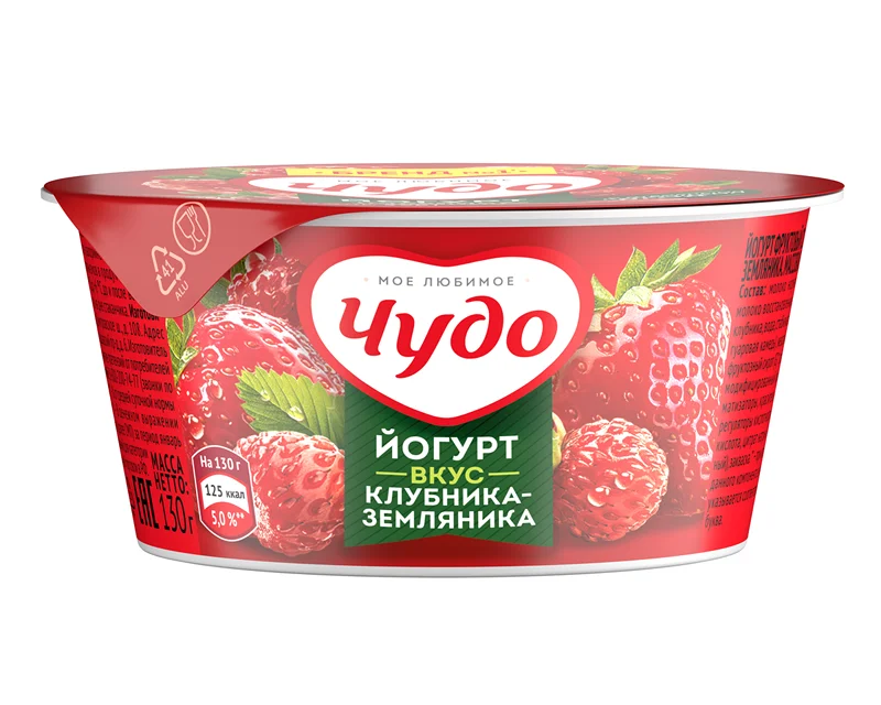 Йогурт фруктовый Чудо клубника-земляника 2%, 130г