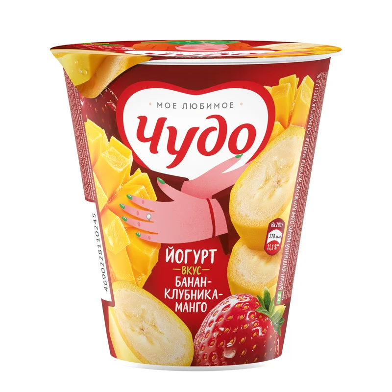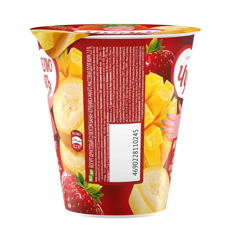 Состав: А – молоко нормализованное или В – молоко нормализованное, молоко восстановленное или С – молоко восстановленное, молоко нормализованное; наполнитель Вишня – шоколад – гранола: вода, вишня, сахар, зерновые хлопья (ржаные, пшеничные, овсяные, ячменные, спельтовые), пшеничные хлопья, жареный дробленый миндаль, стабилизатор – модифицированный крахмал, пропаренный овес, какао-порошок, темный шоколад, сахар, какао тертое, какао-порошок, ароматизатор, семена чиа, семена льна коричневые обжаренные, ароматизаторы, регуляторы кислотности – лимонная кислота, цитрат натрия 3-замещенный, краситель – кармины; сахар; вода, закваска.