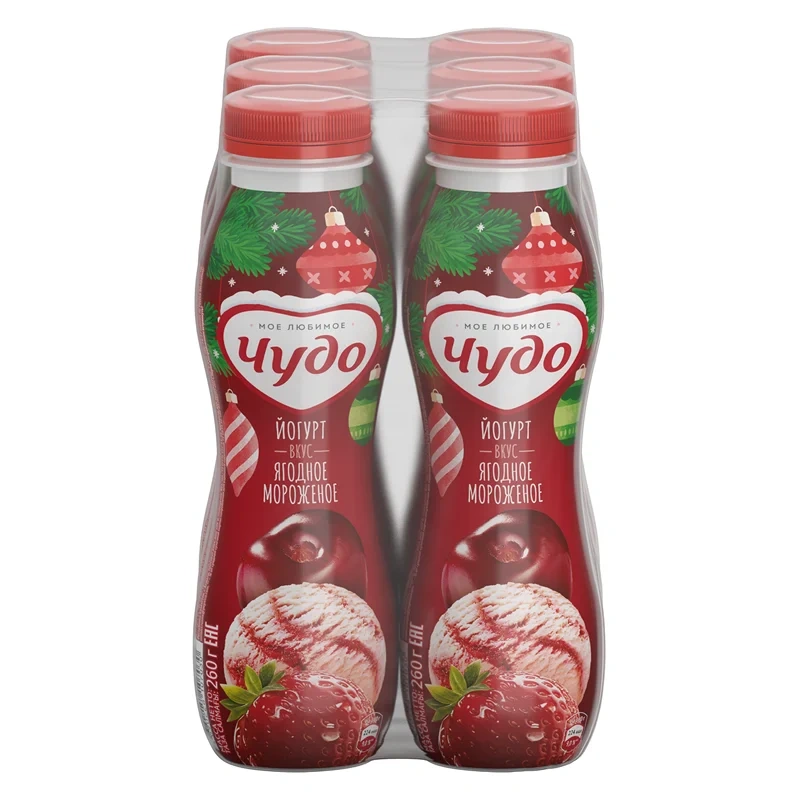 Йогурт питьевой Чудо Ягодное мороженое 1.9%, 260г
