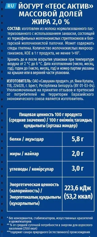 | Тип | питьевой йогурт |