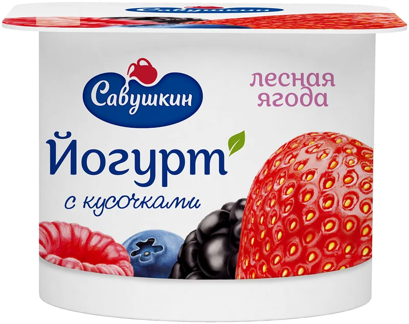 Йогурты 'Савушкин' - полезные молочные десерты, изготовленные из натурального коровьего молока. Лесные ягоды - кладезь витаминов и полезных веществ. Спелые ягоды: сладкая черника, нежная малина и сочная клубника - придают йогурту нежный розовый оттенок и заманчивый аромат. Маленькую баночку удобно взять с собой на перекус, а можно просто побаловать себя на завтрак.