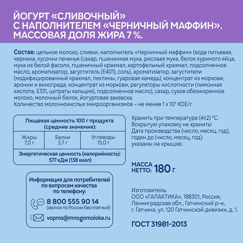 Цельное молоко, сливки, наполнитель вода питьевая, сахар, загустители модифицированный крахмал, гуаровая камедь, ароматизатор со вкусом крем-брюле, регуляторы кислотности лимонная кислота, Е331, краситель бета-каротин, сухое обезжиренное молоко, молочный белок, йогуртовая закваска.