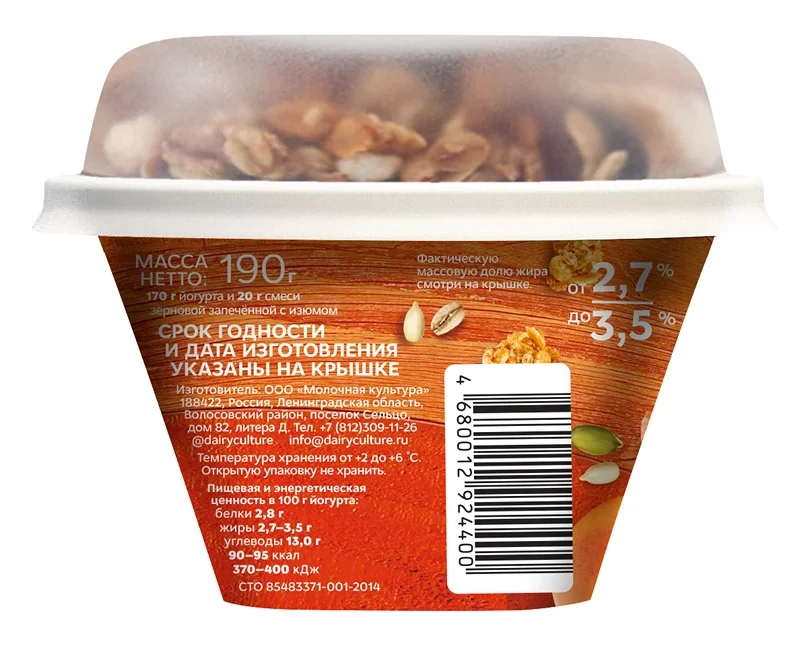 Йогурт Молочная культура абрикос-гранола 2.7-3.5%, 190г