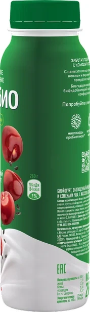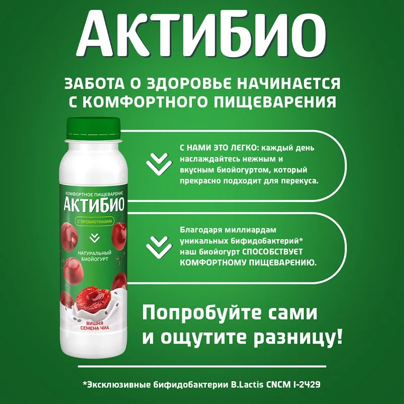 Йогурт питьевой Актибио Вишня-семена чиа, 1.5%, 260г