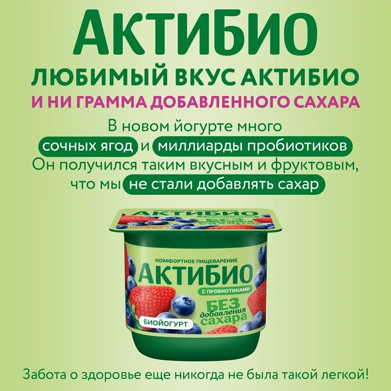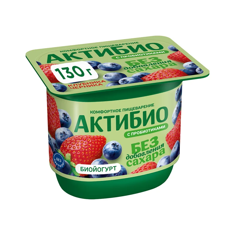 Йогурт питьевой Актибио с клубникой и черникой без сахара 3%, 130г