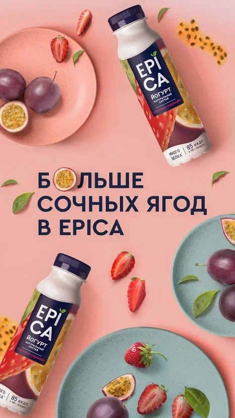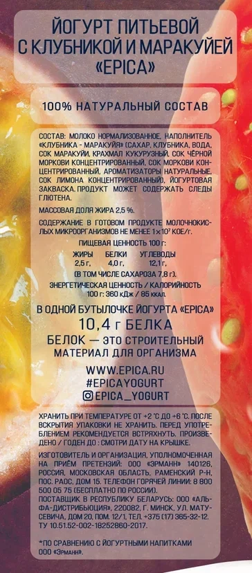 Йогурт питьевой Epica клубника-маракуйя, 260г