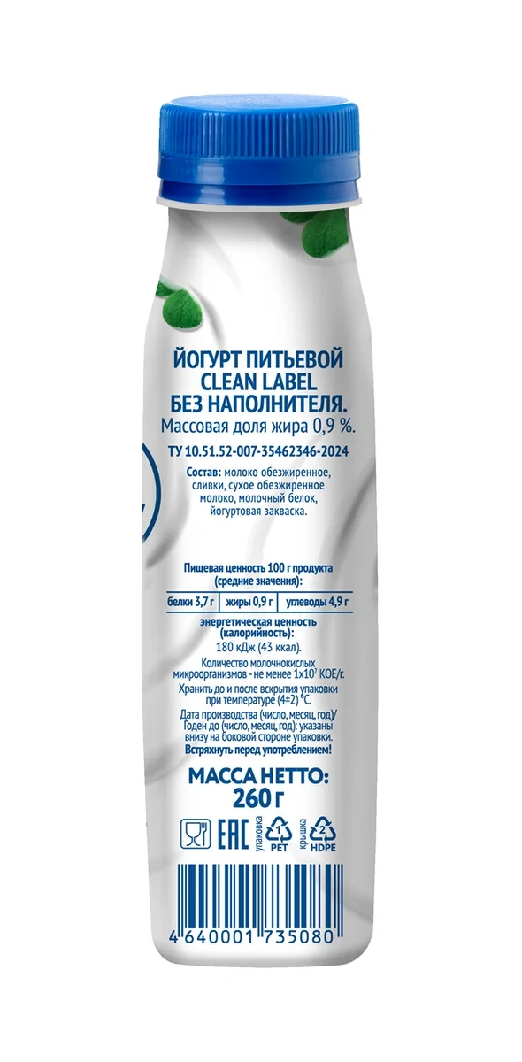 Йогурт питьевой Viola натуральный 0.9%, 260г