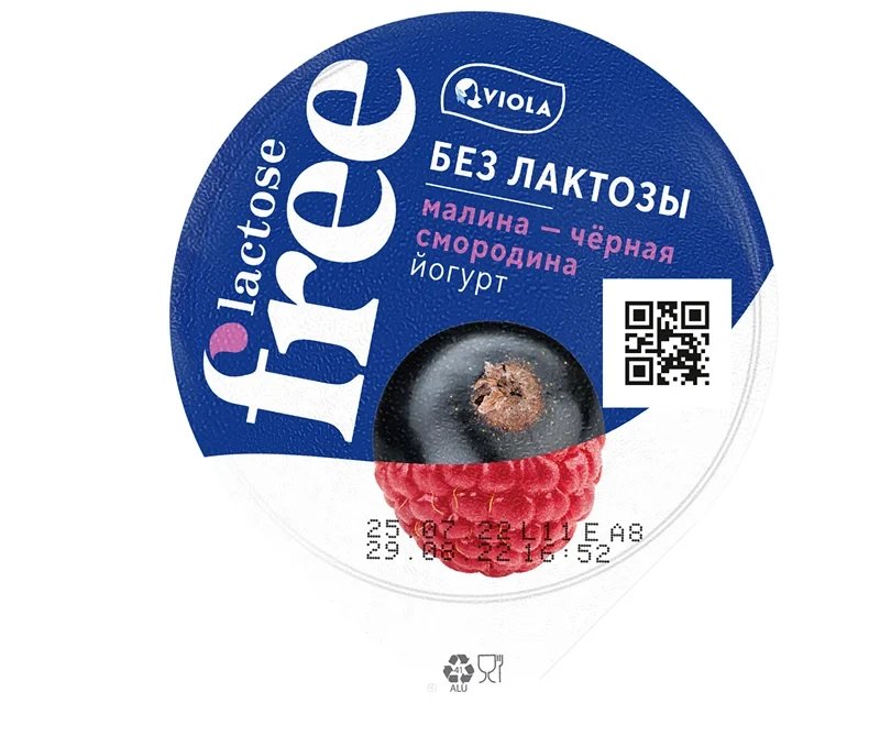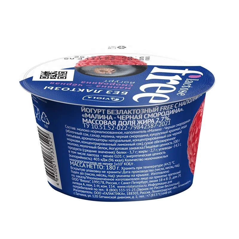 Йогурт Viola безлактозный Free малина-черная смородина 2.7%, 180г