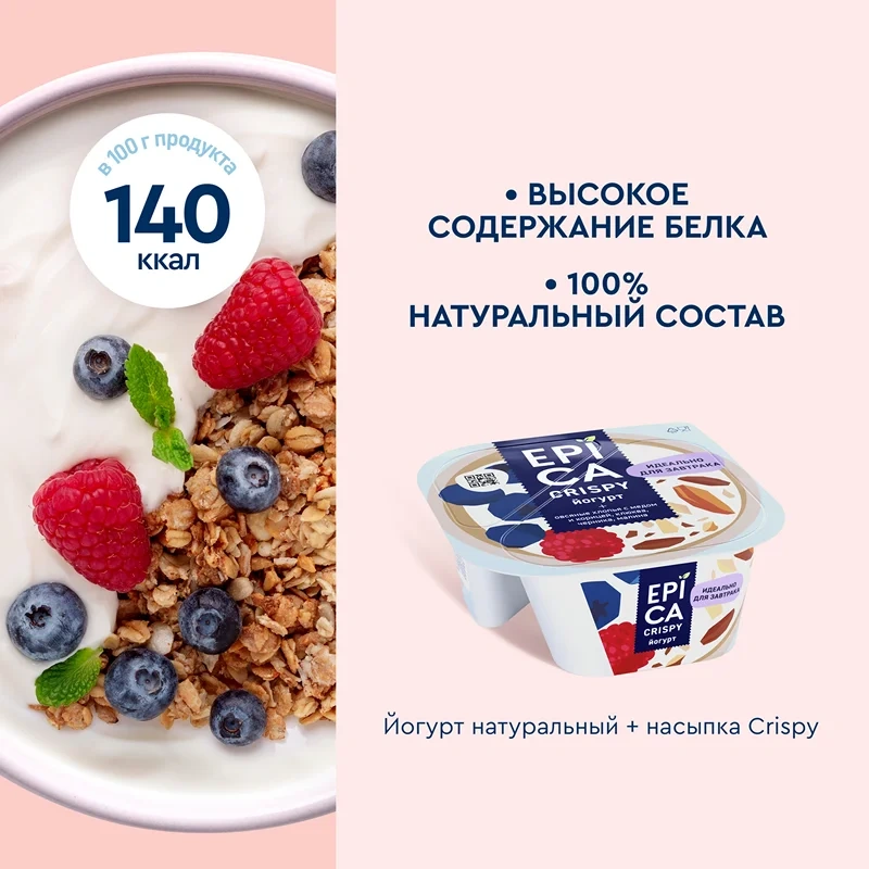 Йогурт Epica Crispy мюсли и сушеные ягоды, 6.5%, 138г