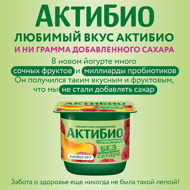 Йогурт питьевой Актибио с персиком и малиной без сахара 1.5%, 260г