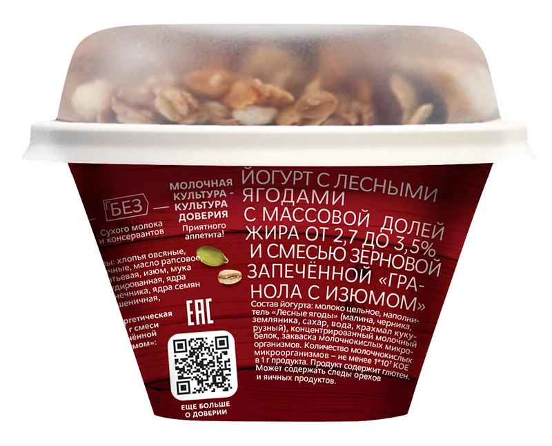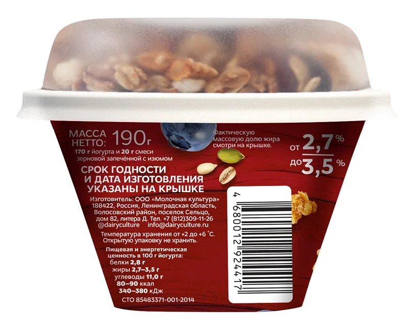 Йогурт Молочная культура лесные ягоды-гранола 2.7-3.5%, 190г