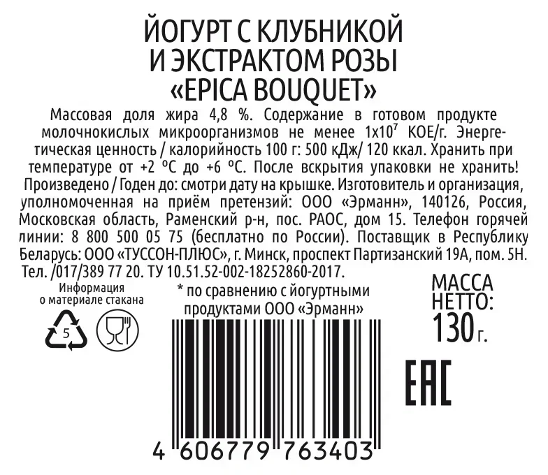 Йогурт Epica Bouquet клубника и роза, 4.8%, 130г